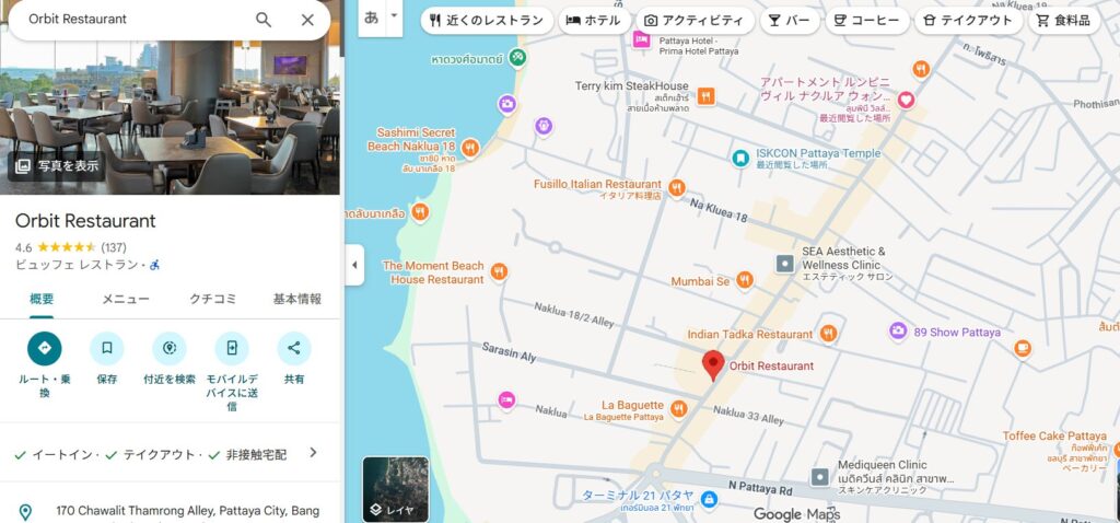 👉 Orbit Restaurant(Grande Centre Point Space Pattaya)をGoogleマップで開く