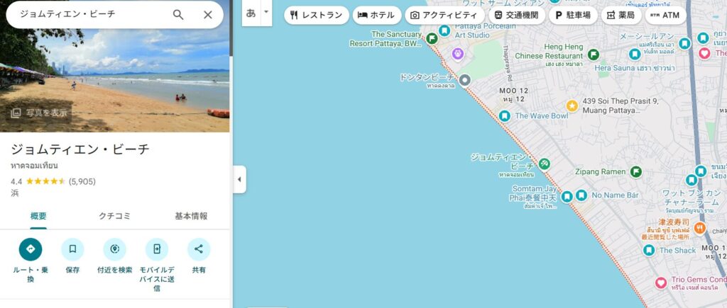 • 「Jomtien」と書かれたルートが目印」