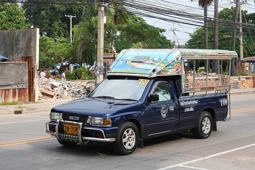パタヤ旅行で一番コスパよく移動できる乗り物が「ソンテウ(バーツバス)」です。青いトラック型の乗り合い車で、市内を循環しているため慣れるとタクシーより便利な場面も多くあります。