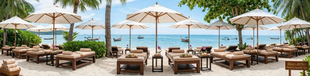 ビーチサイド・マッサージ(Beachfront Massage) パタヤビーチやジョムティエンビーチ沿いに並ぶ、青空の下のマッサージ。