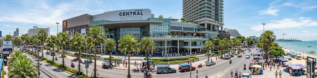 ビーチロードのど真ん中に位置する、パタヤで最も規模が大きく利便性の高いモールです。高級ブランドからユニクロなどのカジュアルウェア、大型スーパーまで何でも揃う、観光客の「拠点」とも言える場所です。