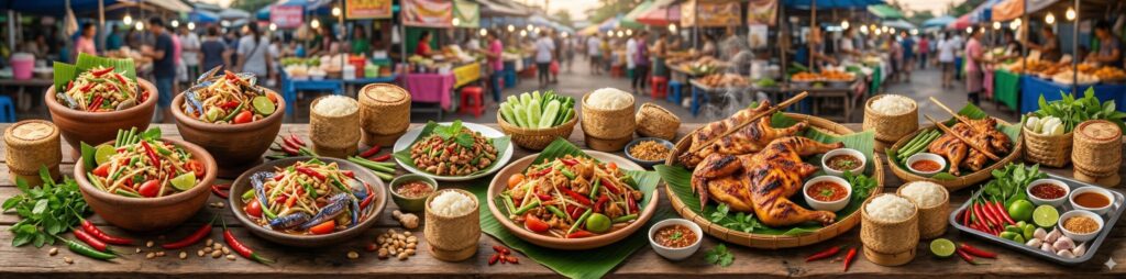 - サイドメニュー: ガイヤーン(タイ風焼き鳥)と一緒に、カオニャオ(もち米)を手で丸めて食べるのがパタヤ流の正解。